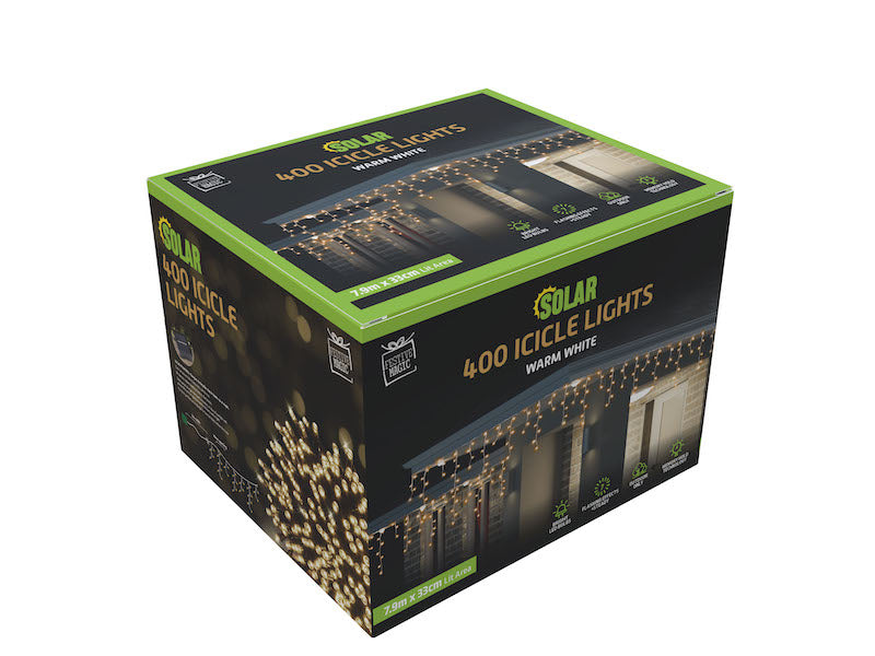 Solar 400 LED Icicle Lights – (7.9m + 33cm Lit Area)